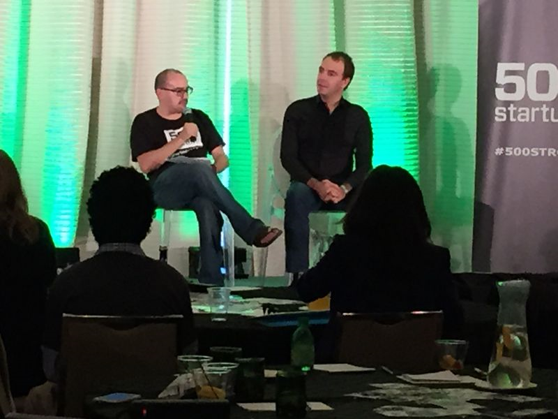 500 Startups founder Dave McClure chats with Fabrice Grinda during its PreMoney conference in Miami in March.