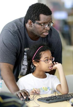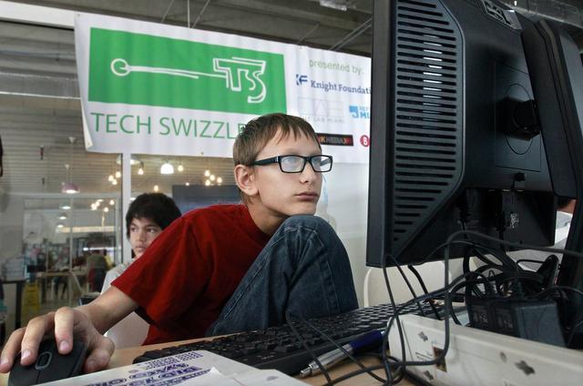 Savion Steinmetz, above, of Aventura scrutinizes data during a hands-on computer workshop led by Ajit Jaokar at The LAB Miami last November. Middle photo: Summer Stanley of Miami, and her dad, Levi Stanley, tweak some coding. Top photo: Ajit Jaokar leads the workshop. Photos by MARSHA HALPER / MIAMI HERALD STAFF