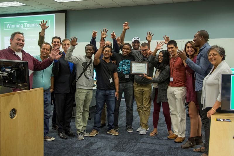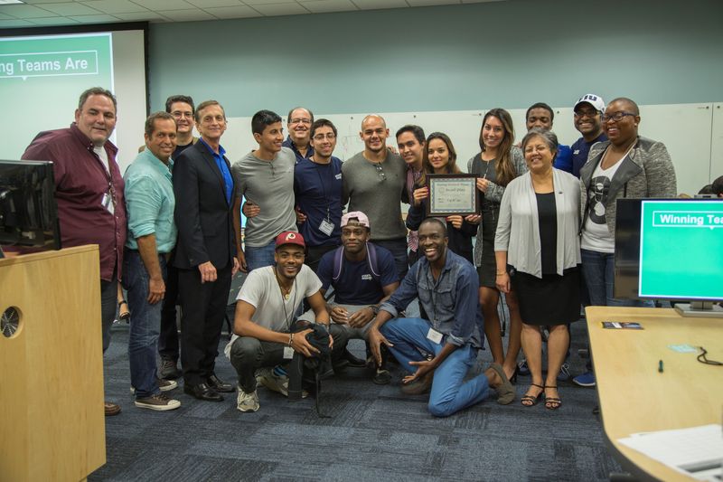 The winning team Headliner, shown with Startup Weekend @ FIU mentors and organizers.