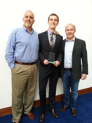 Pictured above: Connor Masterson of University of Miami, one of the winners, is flanked by judges Barry Kates, president of EO South Florida (left) and Jason Bowen, EO member and president of Consumer Information Bureau in Pompano Beach.