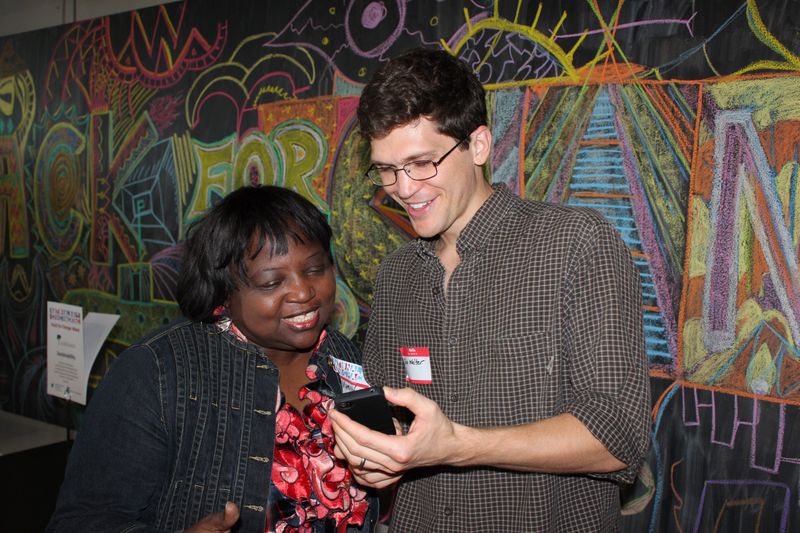 COUNTING CODE: Marilyn Stephens, a data specialist with the U.S. Census, shows John Walter, a UM law student, how to aggregate census data on his smart phone. (THEO KARANTSALIS/FOR THE MIAMI HERALD)