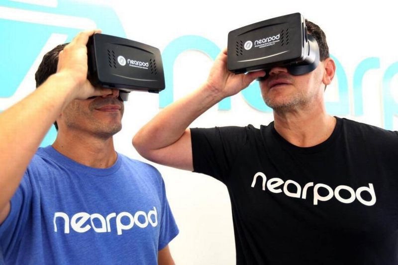 As the co-founders demo the company’s virtual reality lessons, Abramzon explains that students virtually visit sites of history or culture like the Eiffel Tower, the Egyptian Pyramids and Checkpoint Charlie to learn about the Cold War or even concentration camps. The visits are accompanied by in-app videos, quizzes and opportunities for questions and interaction with teachers. Altogether, the VR lessons, which Nearpod began offering last year, have drawn more than 6 million views.