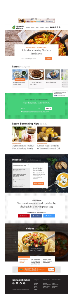 Founded in 2009 by veteran journalist Bravo, HispanicKitchen.com and its social media channels reach a combined 1.6 million monthly users. The newly re-launched website features a database of thousands of Latino recipes with 85 percent of its traffic coming from mobile devices and 90 percent driven by all major social platforms, especially Facebook, with nearly 1.2 million engaged fans.