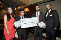 Third: Alumni category, Campus Breeze -- from left to right: Susy Alvarez-Diaz, director of the University of Miami School of Business Administration entrepreneurship programs; David Primach, grand prize winner, alumni track; and Adrian Alvarez, program director, Univeristy of Miami Launchpad