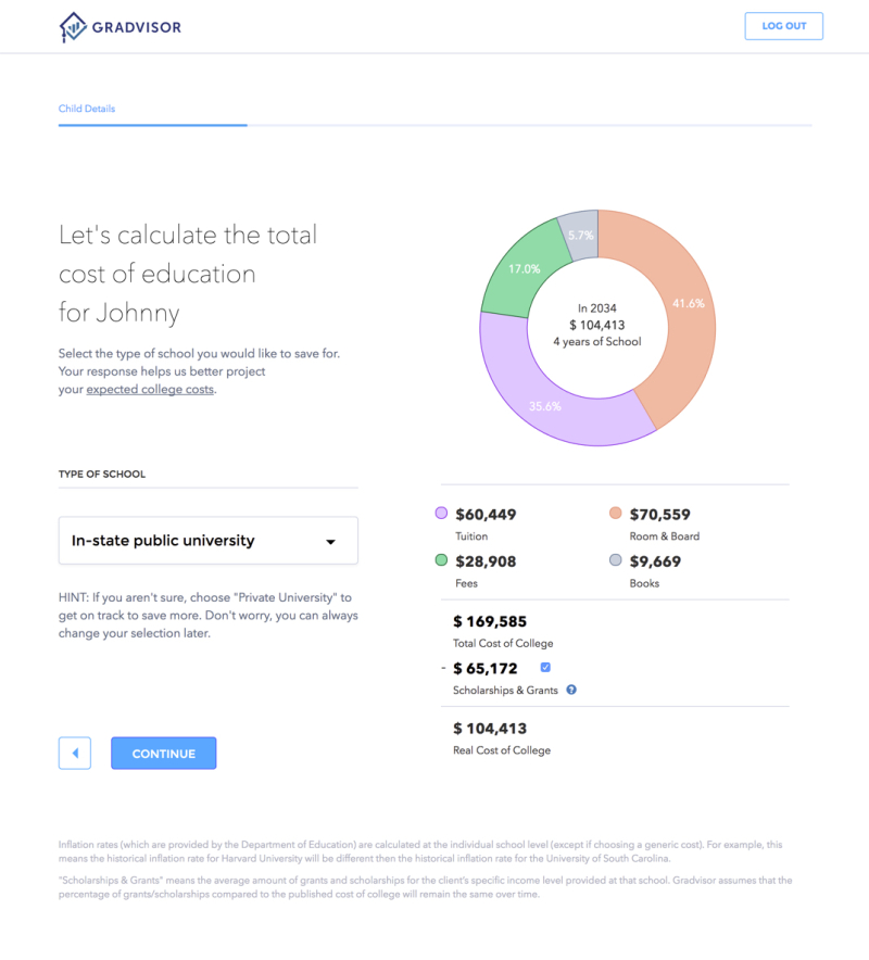 Gradvisor works as a roboadvisor, using algorithms and data to recommend the best 529 plan for each employee. Traditionally, 529 benefits have been one-size-fits-all, with the company selecting one plan that works best for the biggest number of employees, said Cordero.Gradvisor users save earlier, starting when their child is age 5 rather than 7, and they save more -- $236 per month vs. $175 per month -- than non-users, he said.