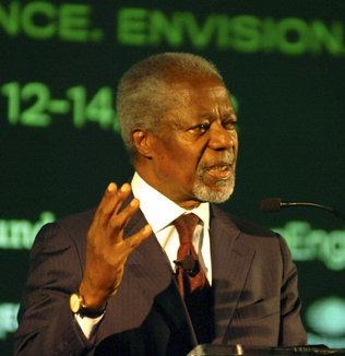 In the Ritz-Carlton ballroom in Coconut Grove on Monday, Kofi Annan, the former Secretary-General of the United Nations, addressed a crowd of well-dressed world savers to open the Continuity Forum of the Americas Business Council (abc*). In a speech that touched on the environment, the Arab awakening, democracy in Latin America, the spiraling conflict in Syria, nuclear war and resource scarcity, Annan encouraged attendees to address these and other problems by thinking local.
