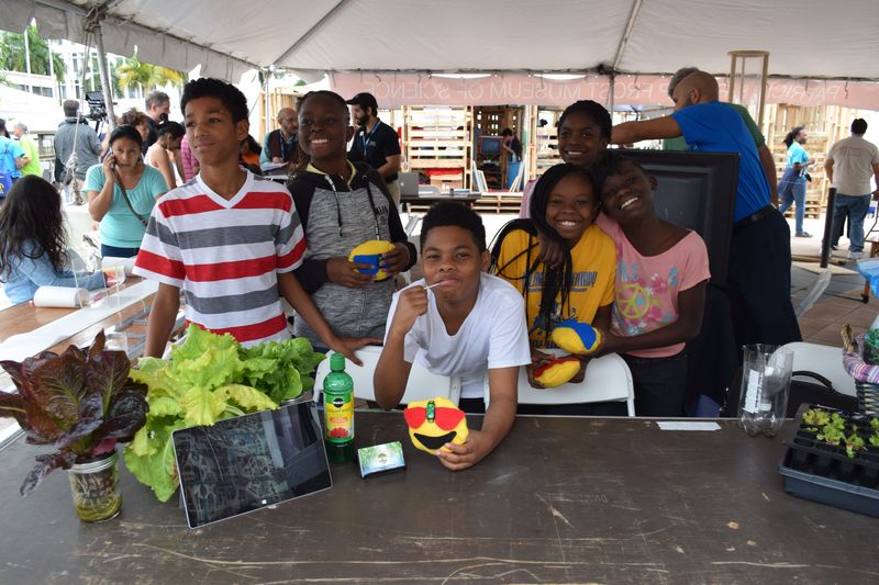 Gabriel Streeter, Shekeyna Walker, Amauri Stratford, Kenya Burnes, Kaniya Smith, Jennifer Jean-Jacques have been working with aquaponics in their school and participated in a booth at the Miami Mini Maker Faire. Photo by Steve Viti