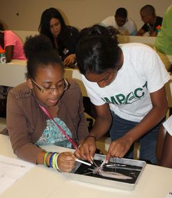 Students dissect squid as part of the Upward Bound program at the Miami Science Museum.