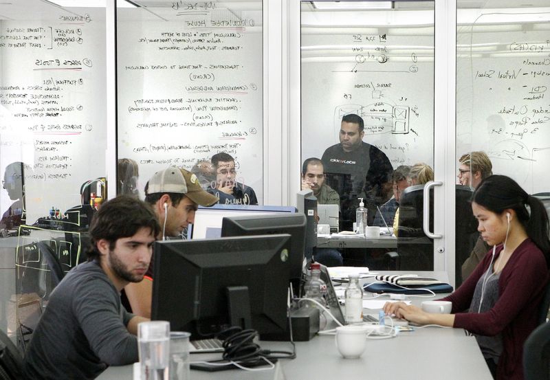 Posted Oct. 28, 2014. Photo at top shows Rokk3r at work earlier this year and second photo shows co-founders German Montaya, Juan Montoya and Nabyl Charania of Rokk3r Labs in 2013. Photos by Miami Herald staff.