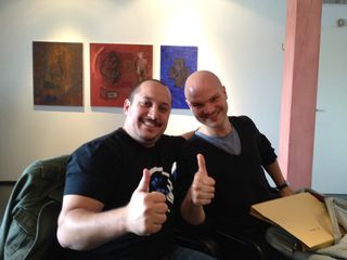 (Photo provided by Senzari shows Senzari COO Demian Bellumio and Philipp Eibach, wahwah's CEO and now Senzari's VP of music services, after signing the deal in Berlin.)