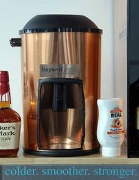 Concept: Beyond Zero appliances make, store and dispense pure liquor ice. Plug it in. add liquor, and just a few minutes later, it comes out like ice. It makes cocktails colder, smoother and stronger than if regular frozen-water ice cubes were used.