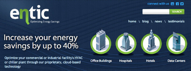 Concept: Entic’s cloud-based software solution allows large commercial and industrial buildings to achieve peak performance in their HVAC systems and chiller plants through advanced analytics and optimization, delivering up to 40 percent energy savings.