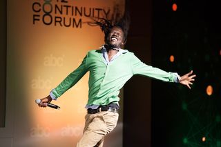 On Tuesday, hip-hop recording artist Emmanuel Jal, who was born into the life of a child soldier in Sudan but has gone on to release three albums and collaborate on numerous philanthropic music projects, brought the crowd's energy level up as he sang about peace and had the audience joining in.