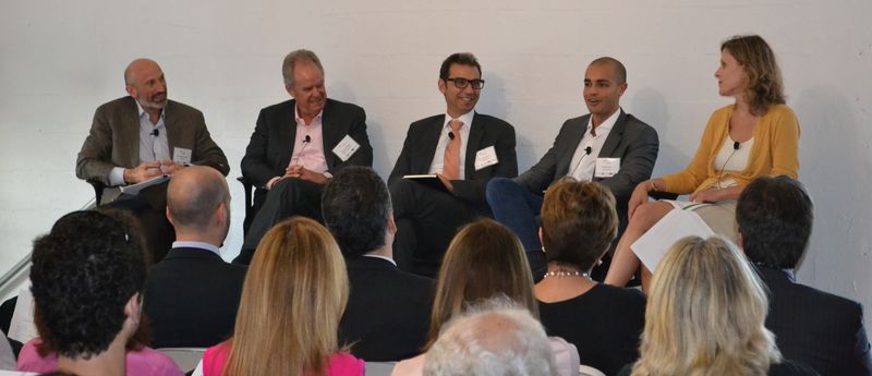 From left: Juan Pablo Cappello, Manny Medina, Boris Hirmas Said, Andres Moreno and Cate Ambrose discuss the state of venture capital in Latin America at The LAB Miami. Photo by Jose Pimienta.